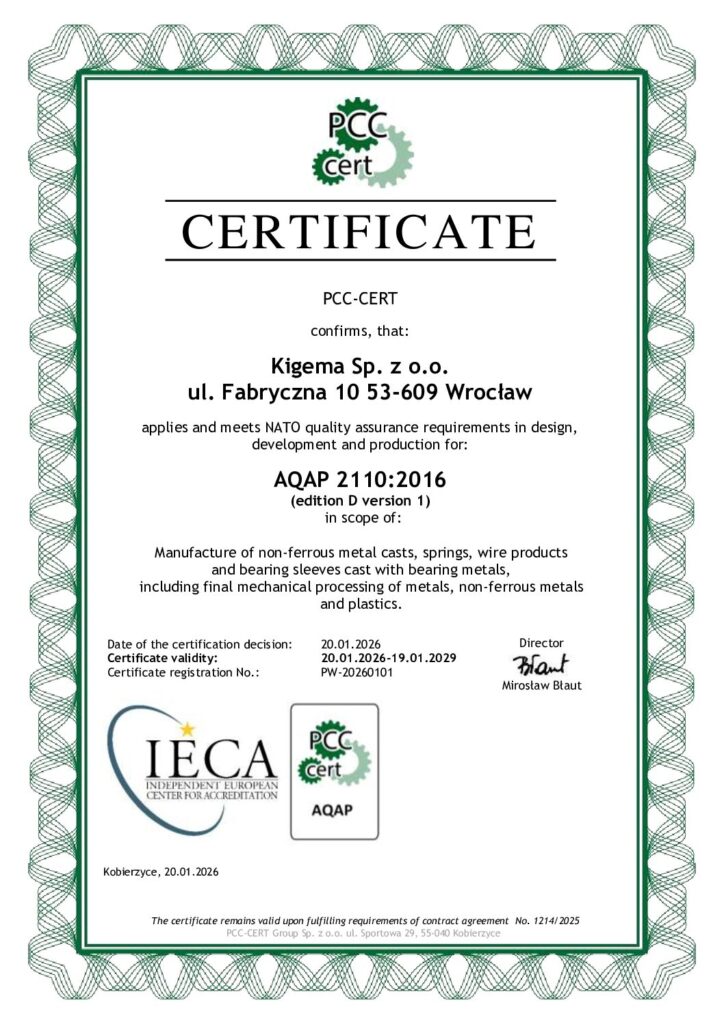 Z dniem 31.12.2023 kończymy nasz projekt “Prace B+R w zakresie wielkogabarytowych tulei, odlewanych metodą odśrodkową, o wysokich parametrach wytrzymałościowych i ślizgowych w Kigema sp. z...